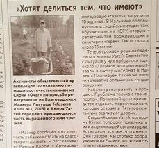 العائدون من شراكسة سورية المقيمون في جمهورية القبرداي- قرية بلاغافيشينكا، يتبرعون بجزء من محصولهم الزراعي للمحتاجين.